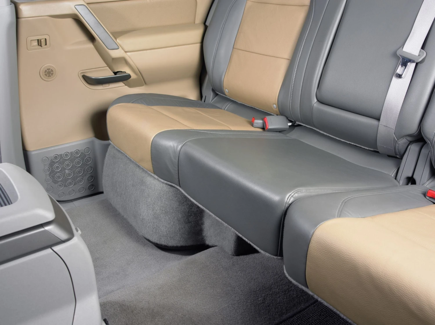 The Stealthbox® installs neatly under the rear seat, leaving plenty of room next to it for amplifier mounting and installation.